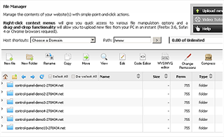 With drag 'n' drop file uploads supported, now this is something absolutely terrific - you no longer require FTP client software to upload files. Simply select the files on your computer and drag them into your browser window - the upload procedure will start immediately. You will also be able to move files around the File Manager making use of the in-built drag 'n' drop functionality.